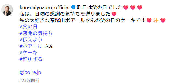 紅ゆずるさんと父親のエピソードは多くありませんが、父の日にケーキを贈るなど良好な関係性がうかがえます。